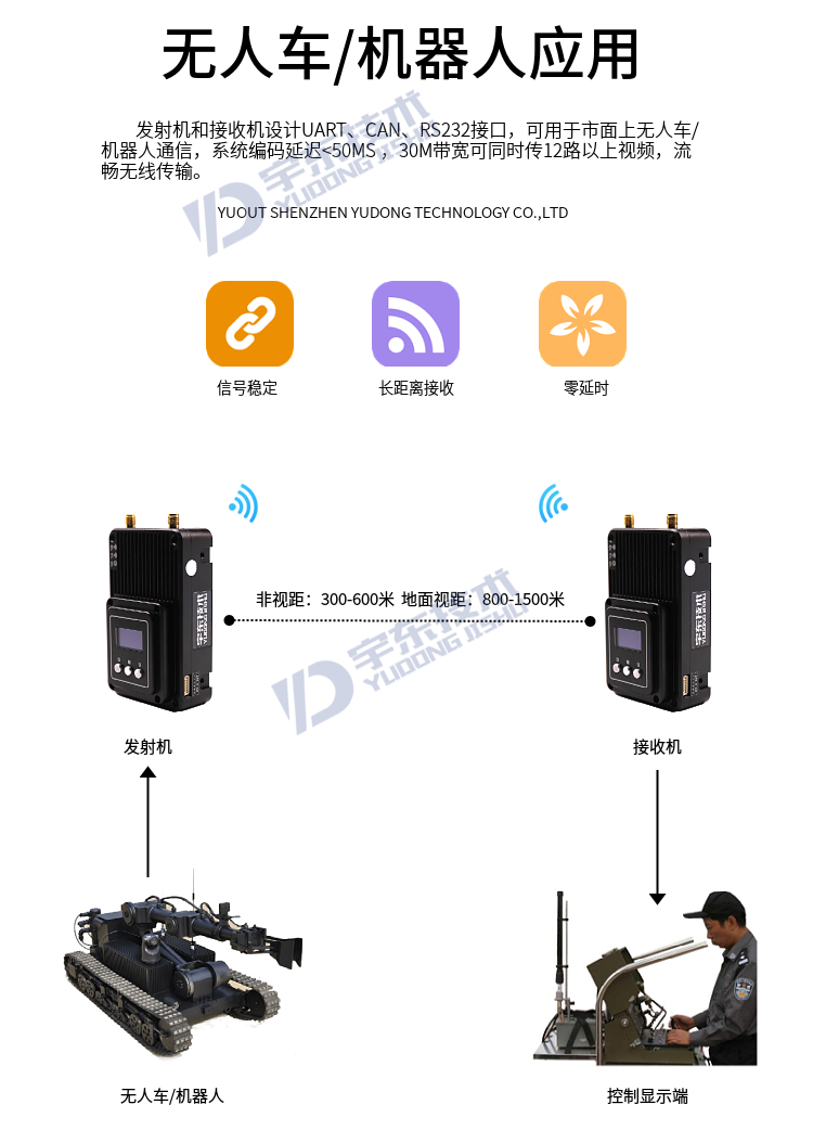 YDTD8000宇東視頻數(shù)據(jù)無(wú)線(xiàn)圖傳系統(tǒng)采用工業(yè)級(jí)無(wú)線(xiàn)高速率數(shù)據(jù)傳輸技術(shù),非視距,非WIFI,集合正交頻分復(fù)用時(shí)分多址調(diào)制及MIMO多進(jìn)多出容量技術(shù),完全基于IP互聯(lián)網(wǎng)協(xié)議,實(shí)現(xiàn)全雙向透明通道寬帶傳輸。非視距:300-600米;地面視距:800-1500米;空對(duì)地:5000米。系統(tǒng)為純硬件連接,即插即用;創(chuàng)新性液晶一體化設(shè)計(jì)、豐富的CAN總線(xiàn)、RS-232、TTL電平接口,更好的用戶(hù)角度體驗(yàn)。通道最大支持30Mbps吞吐量,可廣泛應(yīng)用于工業(yè)自動(dòng)化、工業(yè)機(jī)器人、無(wú)人機(jī)、視頻監(jiān)控等通信工作。