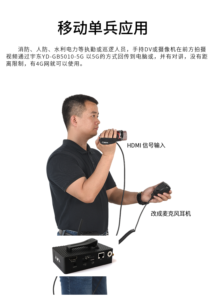 YD-GB5010-5G設備基于先進的 H.265 視頻編碼技術和 5G 無線信道捆綁傳輸技術開發(fā)的新一代產品。支持支持 5G、4G 網絡模式,采用 H.265(HEVC)超低碼率,F(xiàn)EC 前向糾錯技術,獨有的 UDP 快速冗余容錯,PID 控制的自適應帶寬編碼和傳輸, 1M 輕松傳輸送 1080P 視頻。