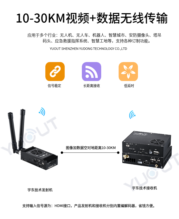 YD-HDT530-DM是圖數(shù)一體無(wú)線發(fā)射機(jī),內(nèi)置雙向OFDM無(wú)線鏈路,支持單向無(wú)線視頻發(fā)射、雙向無(wú)線語(yǔ)音傳輸、雙向無(wú)線網(wǎng)絡(luò)透?jìng)?、雙向無(wú)線串口透?jìng)鳌?br />