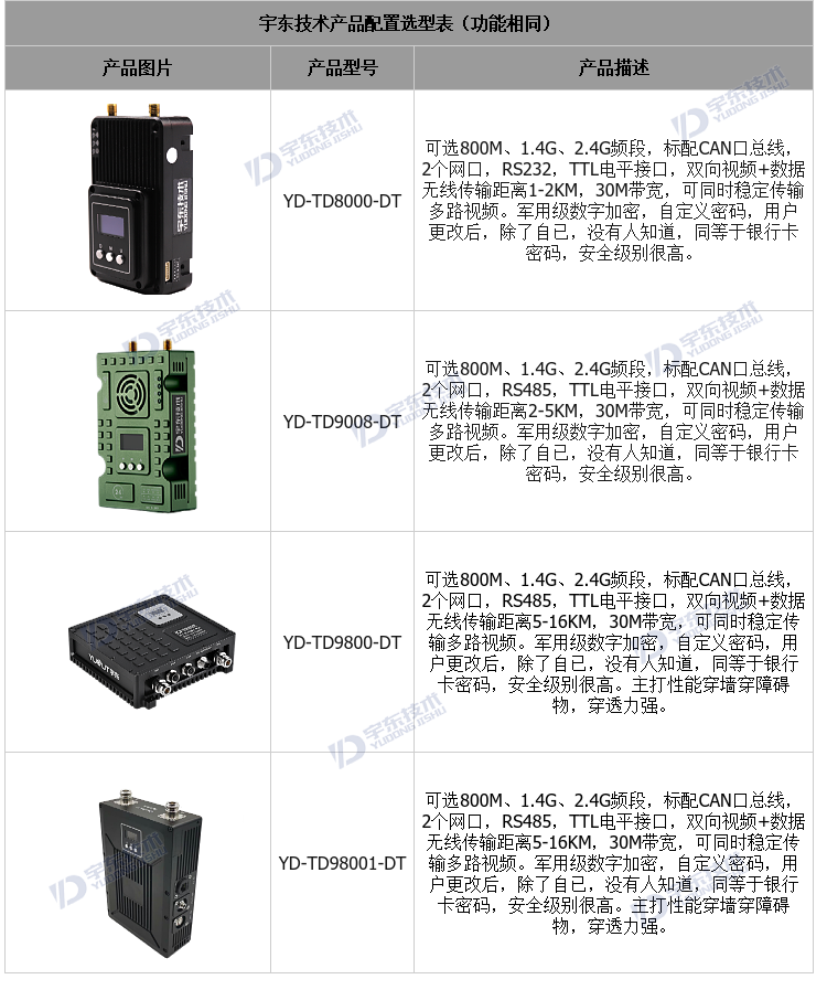 YD-TD9800-DT低時(shí)延無(wú)線圖傳系統(tǒng),采用工業(yè)級(jí)無(wú)線高速跳頻傳輸技術(shù),非視距,非WIFI,集合正交頻分復(fù)用時(shí)分多址調(diào)制及MIMO多進(jìn)多出容量技術(shù),完全基于IP互聯(lián)網(wǎng)協(xié)議,將信道資源在時(shí)間上通過(guò)時(shí)隙、頻率上通過(guò)子載波來(lái)靈活分配給多個(gè)用戶,在單一頻率點(diǎn)最大限度的提供多用戶接入,完全實(shí)現(xiàn)雙向透明通道寬帶傳輸。通道最大支持30Mbps吞吐量,視距可傳輸:10-18公里。系統(tǒng)為純硬件連接,即插即用;創(chuàng)新性液晶一體化設(shè)計(jì)、豐富的CAN總線、RS-232、TTL電平接口,更好的用戶角度體驗(yàn)。且系統(tǒng)具有很強(qiáng)的抗多徑干擾能力,克服模擬技術(shù)和常規(guī)調(diào)制技術(shù)下多徑反射及遮擋所帶來(lái)的困擾,實(shí)現(xiàn)在復(fù)雜的環(huán)境下多點(diǎn)傳輸寬帶數(shù)據(jù)、視頻、音頻。可廣泛應(yīng)用于工業(yè)自動(dòng)化、工業(yè)機(jī)器人、無(wú)人機(jī)等通信工作。