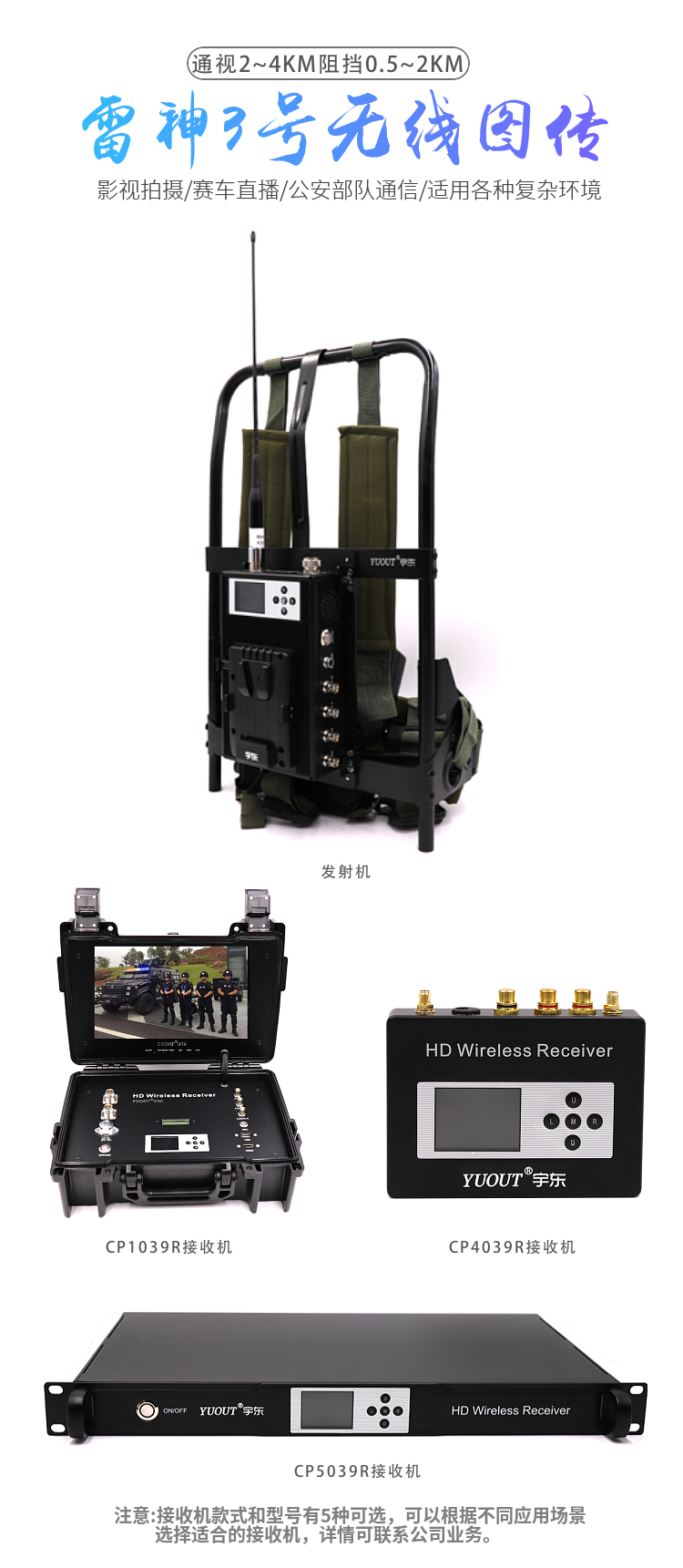雷神3號(hào)無(wú)線圖傳采用宇東自主研發(fā)的非視距無(wú)線技術(shù),300MHz~4400MHz 頻率,可訂制無(wú)線頻段,支持3G/HD-SDI最高1080p60穩(wěn)定傳輸視距1-2KM,最遠(yuǎn)可達(dá)4000米(需要改裝天線),非視距距離200~2000米(具體視實(shí)際應(yīng)用環(huán)境而定)。(環(huán)境復(fù)雜、可穿墻、人多、車多、樹(shù)多及障礙物多的地方),主應(yīng)用于廣播電視臺(tái)、影視拍攝、教育直播、大型演唱會(huì)、電影電視制作、體育轉(zhuǎn)播、社會(huì)新聞、空中實(shí)況、演播室、海事、 交警、人防應(yīng)急、城管執(zhí)法、三防應(yīng)急等方面。系統(tǒng)為純硬件連接,即插即用。