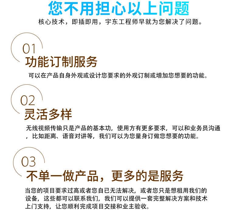 5. 宇東非視距調(diào)制技術(shù),發(fā)射機(jī)輸入具備HDMI以及CVS復(fù)合視音頻接口,各種接口可現(xiàn)場(chǎng)自由切換。